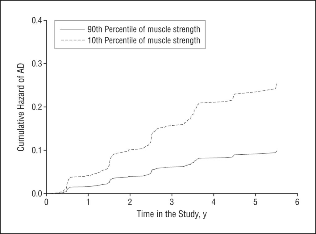 Assuming that, when combined with resistance training, creatine supplementation increases muscle strength, it is possible that creatine could prevent AD. This is based on a Rush University study showing that increased muscle strength is associated with a lower risk of AD. In the study, Rush researchers generated a muscle strength score based on strength measurements from 11 muscle groups. They found that for each increase in muscle strength score, there was a 43% decrease in the risk of AD.