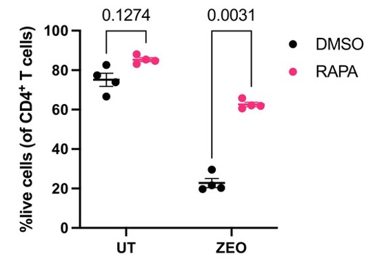 Upon performing a more direct measurement, Kell and colleagues proposed that inhibiting mTOR protects against DNA damage by enhancing DNA integrity. They also measured T cell survival in response to 24 hours of DNA-damaging zeocin exposure. Strikingly, zeocin killed about 80% of T cells, demonstrating the lethality of double-strand breaks. However, inhibiting mTOR greatly improved survival, with 40% of T cells surviving after being exposed to zeocin for 24 hours.