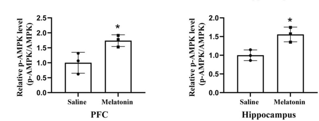 Dosage: Morning (9:00-10:00 am) intraperitoneal injection of melatonin (10 mg/kg/day) for one week