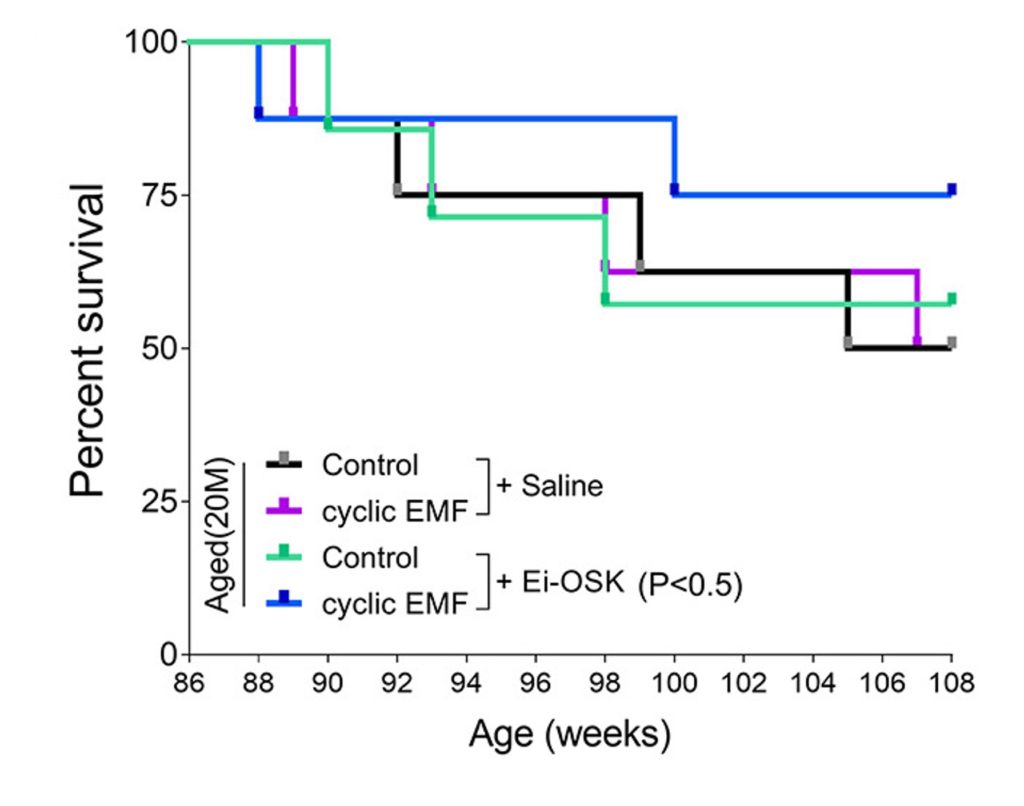 The researchers found that over 75% of the reprogrammed mice lived to 108-weeks-old. They also monitored the survival of engineered mice not exposed to EMFs. Only about 60% of these untreated mice survived until 108-weeks-old. To be thorough, the researchers also monitored normal-aged mice that were not genetically engineered. The survival rate for these mice was even lower, at about 50%. These findings suggest that EMF-induced cyclic cellular reprogramming can prolong the lifespan of aged mice.