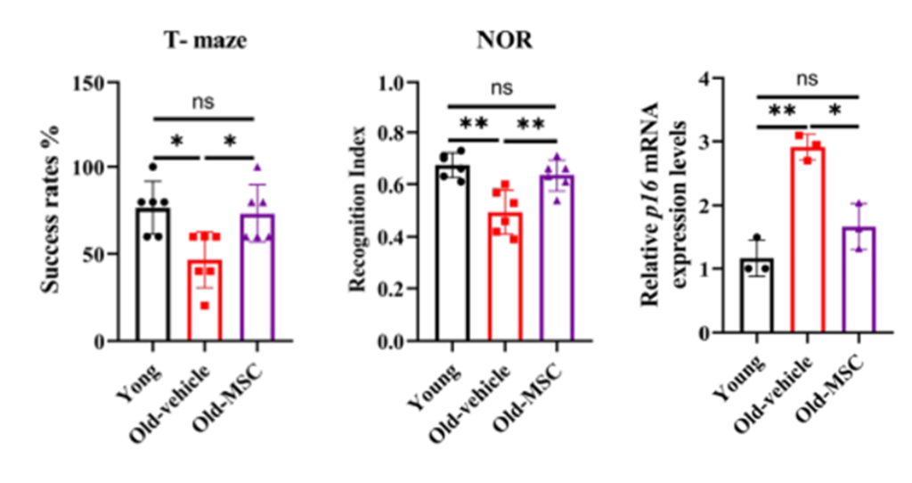 The researchers observed that in older mice, these microglia showed high levels of aging-related proteins such as p16 and p21 and produced excessive inflammatory molecules, including interleukin-6 and tumor necrosis factor alpha. These changes coincided with measurable cognitive decline. After four weeks of treatment with hUC-MSCs, the mice showed near-youthful memory performance and a marked reduction in aging markers within the hippocampus, which is the part of the brain that controls memory and spatial learning.